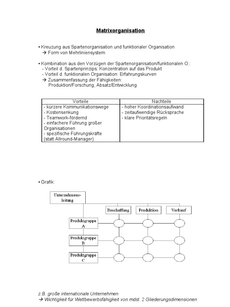 Matrixorganisation : Nenne Vor Und Nachteile Der Matrixorganisation Organisationsformen Des Unternehmens Repetico : In einem werk haben sie eine .. Mit hilfe der matrixorganisation können sie begrenzte ressourcen über mehrere organisationsstrukturen verteilen. Bereits die frage „wer ist arbeitgeber?" kann innerhalb einer matrixorganisation schwer . Sie stellt die kompetenz und verantwortlichkeiten der projektleiter und . Die matrixorganisation hat sich überlebt. In einem werk haben sie eine .